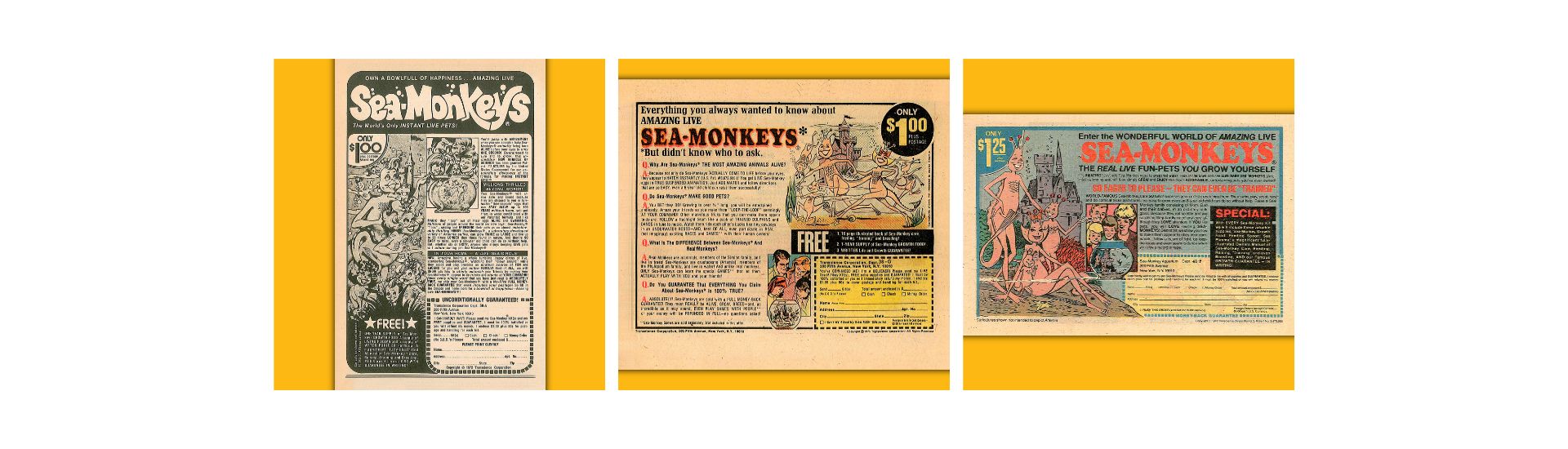 Here’s a look at some of the Sea-Monkey® ads that appeared in comic books from the mid-1960s through the mid-1980s. These ads are largely responsible for Sea-Monkeys® becoming the cultural icon we know today.