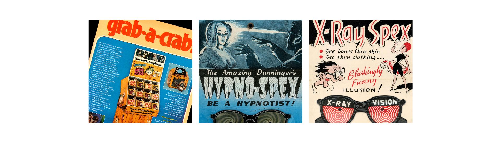 Von Braunhut also introduced CRAZY CRABS® which popularized hermit crabs as pets, and the widely recognized X-RAY SPEX®, which playfully claimed to allow users to "see through skin" and clothing.